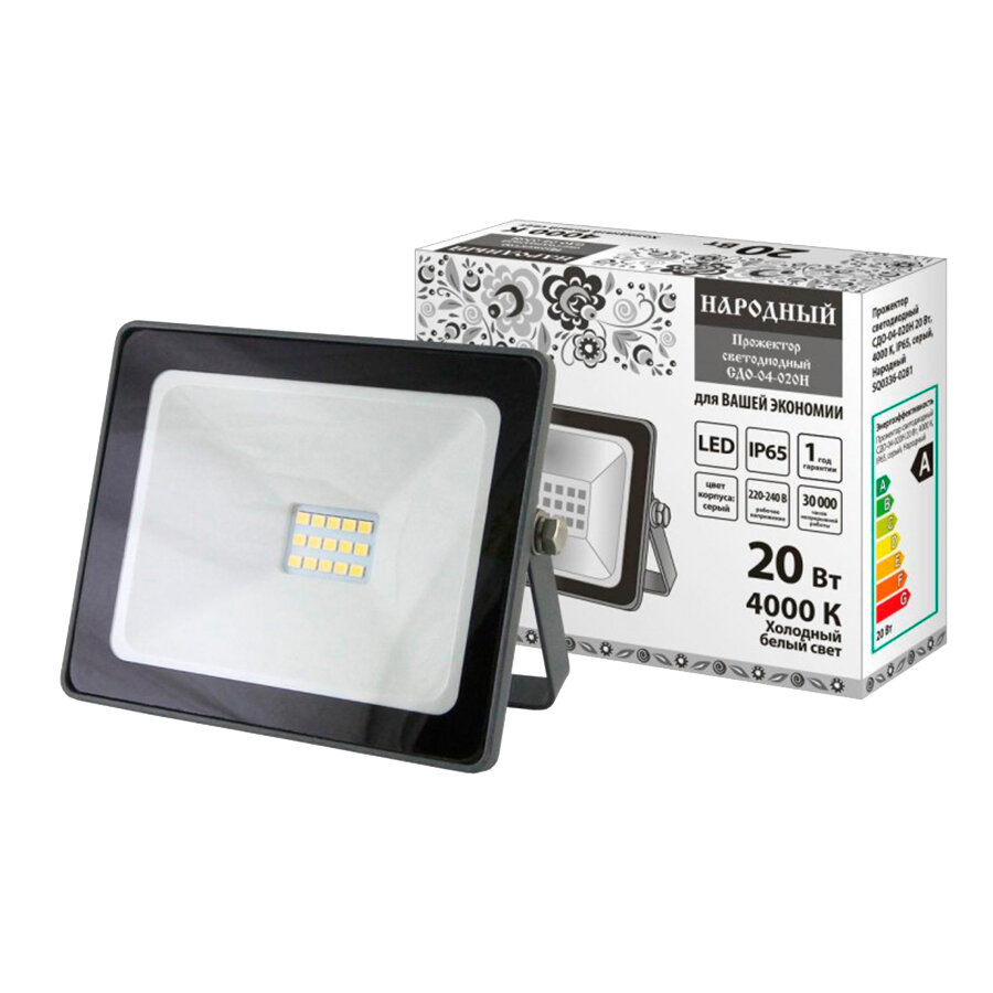 Прожектор светодиодный Народный СДО-04-020Н, 20 Вт, 6500 К, IP65, черный