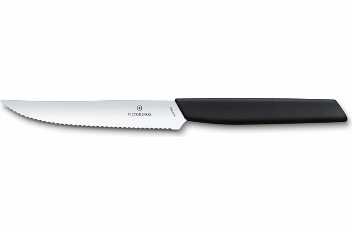 Купить Нож кухонный Victorinox Swiss Modern, столовый, для стейка, 120мм, заточка серрейтор, стальной, черный [6.9003.12w]