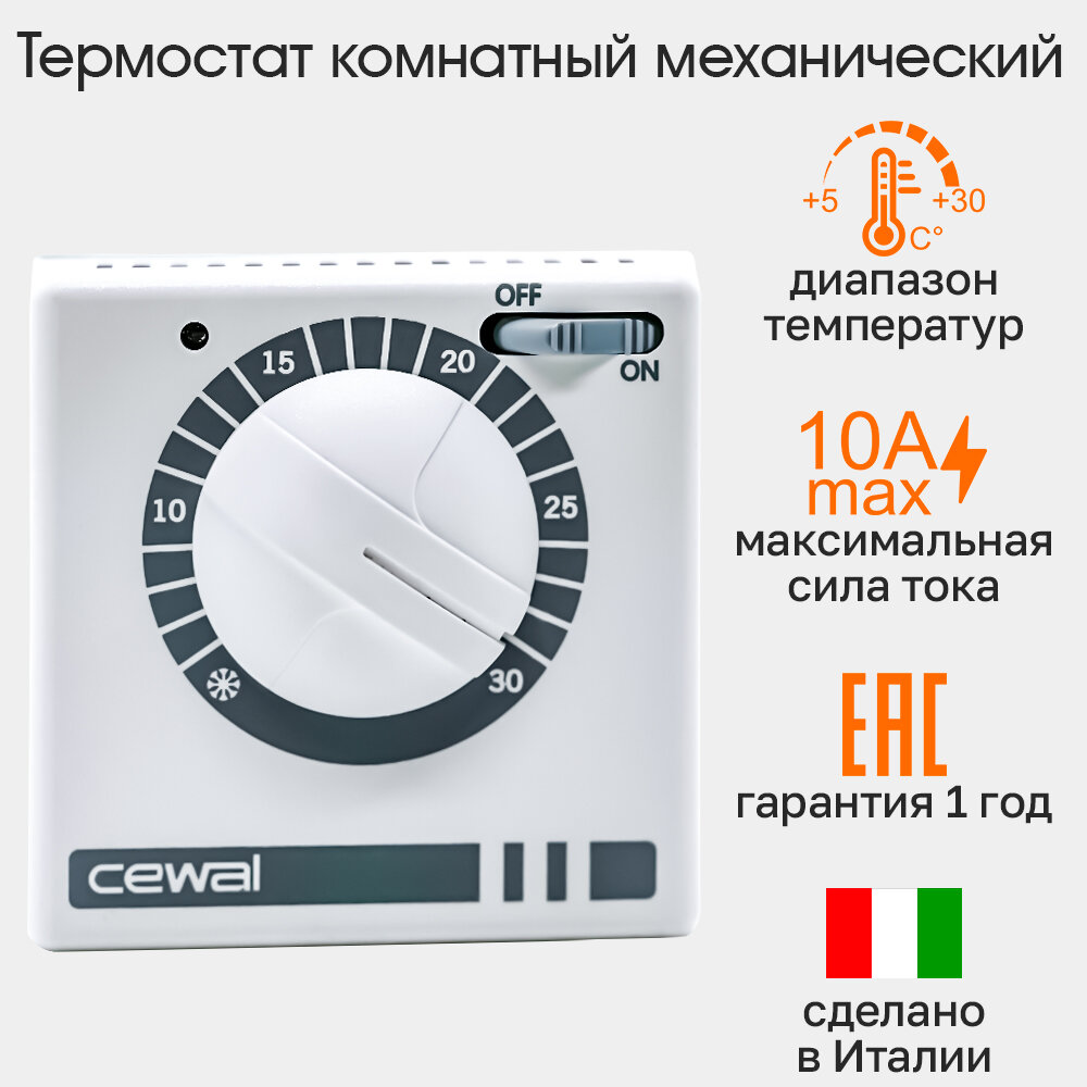 Терморегулятор проводной механический комнатный Cewal RQ30 (Италия) интересное: