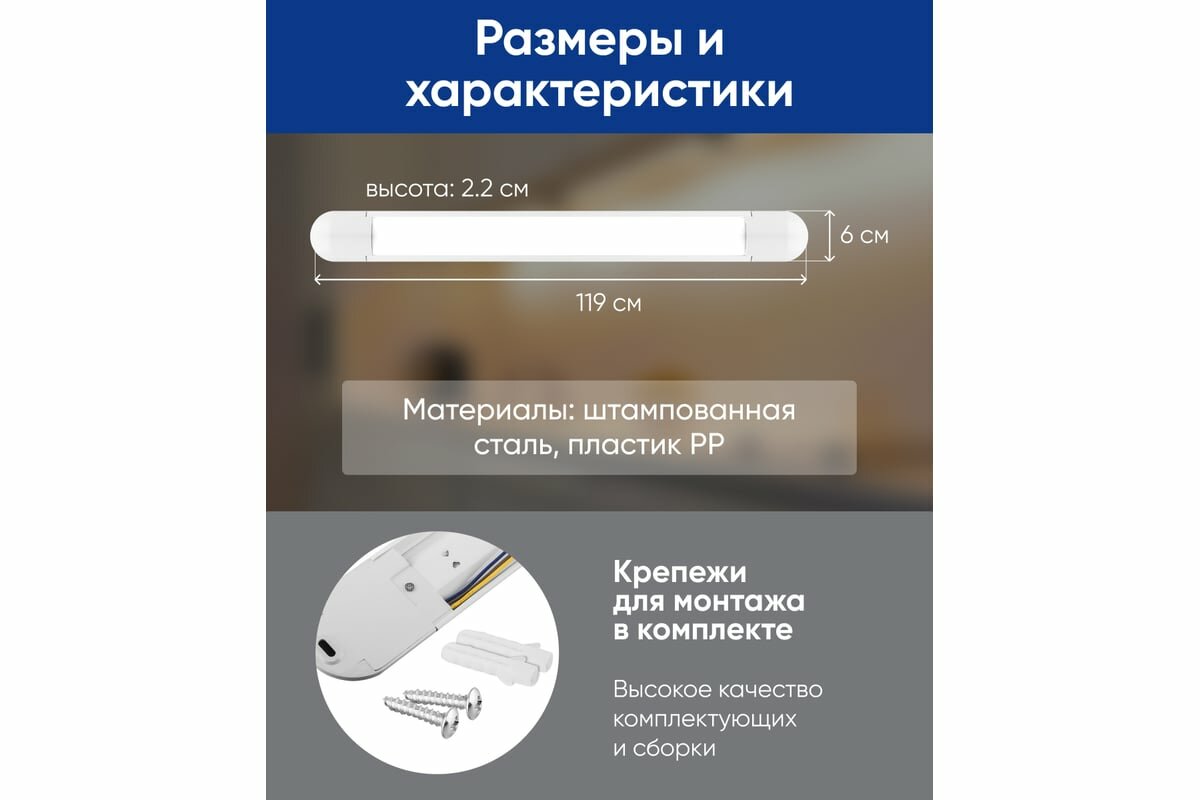 СохранитьСветильник линейный светодиодный ДПО белый 36Вт 2880Лм холодный белый свет 6500К AL5064, 29603 интересное:
