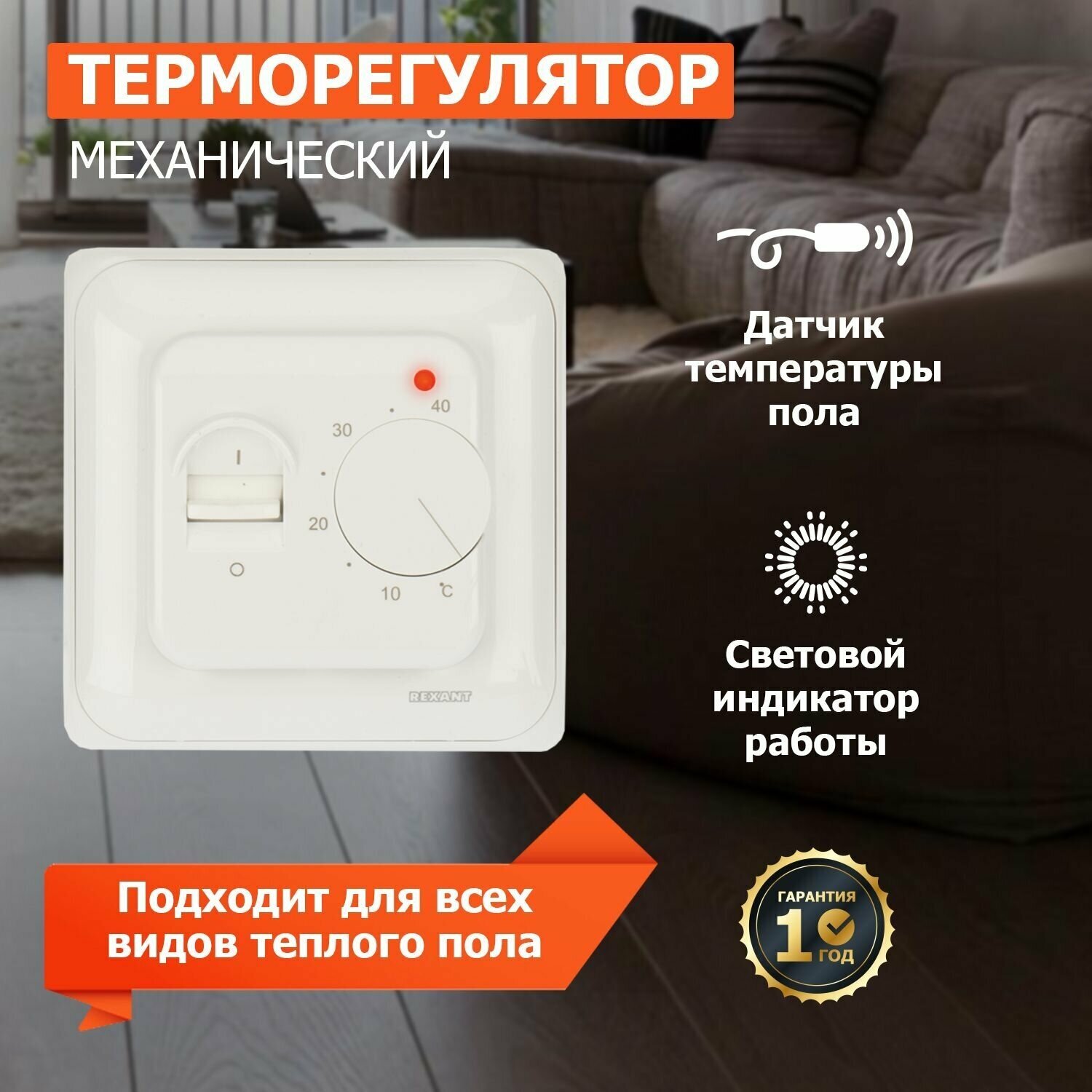 Терморегулятор механическийREXANT R-70ХТ С датчиком температуры пола 51-0531 интересное: