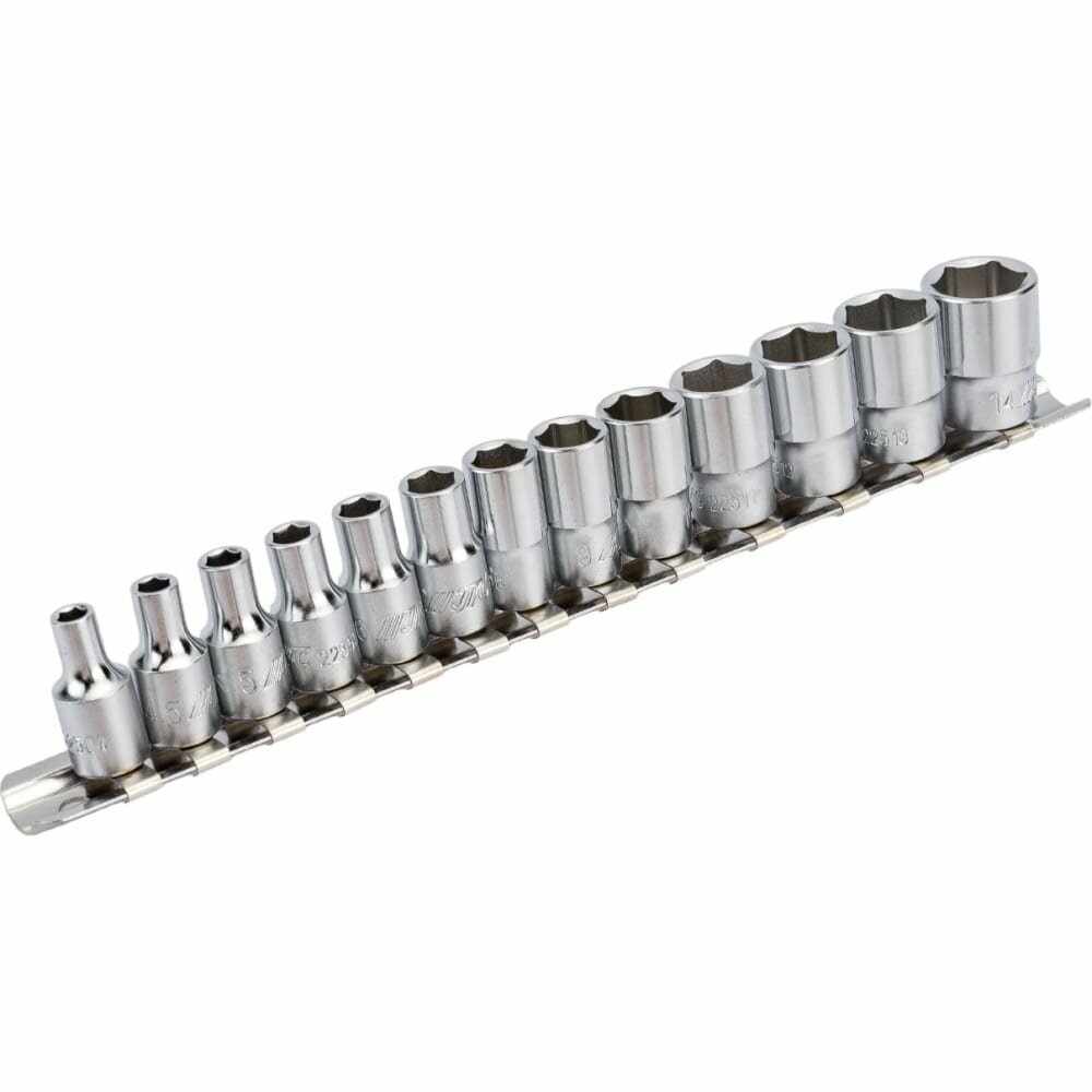 Набор торцевых головок Jtc H213M 1/4" 6-гранных, 4-14мм, длина 25мм, 13 предметов