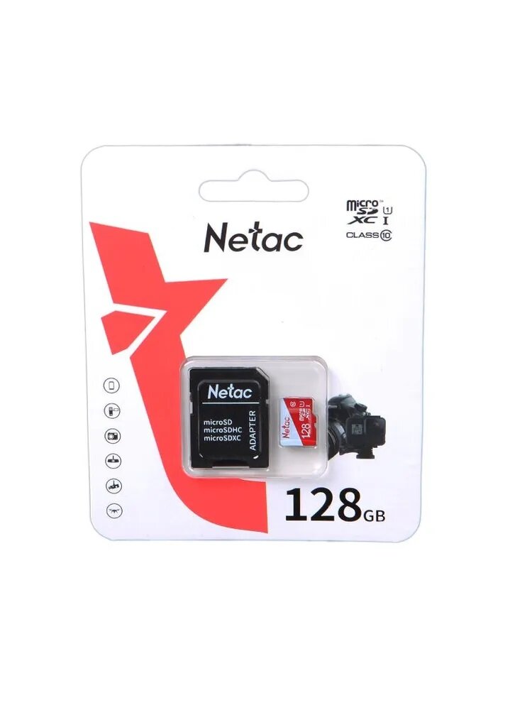 Карта памяти microSDXC Netac P500 Standard 128 GB UHS-I U1 Class 10 NT02P500STN-128G-R + адаптер SD