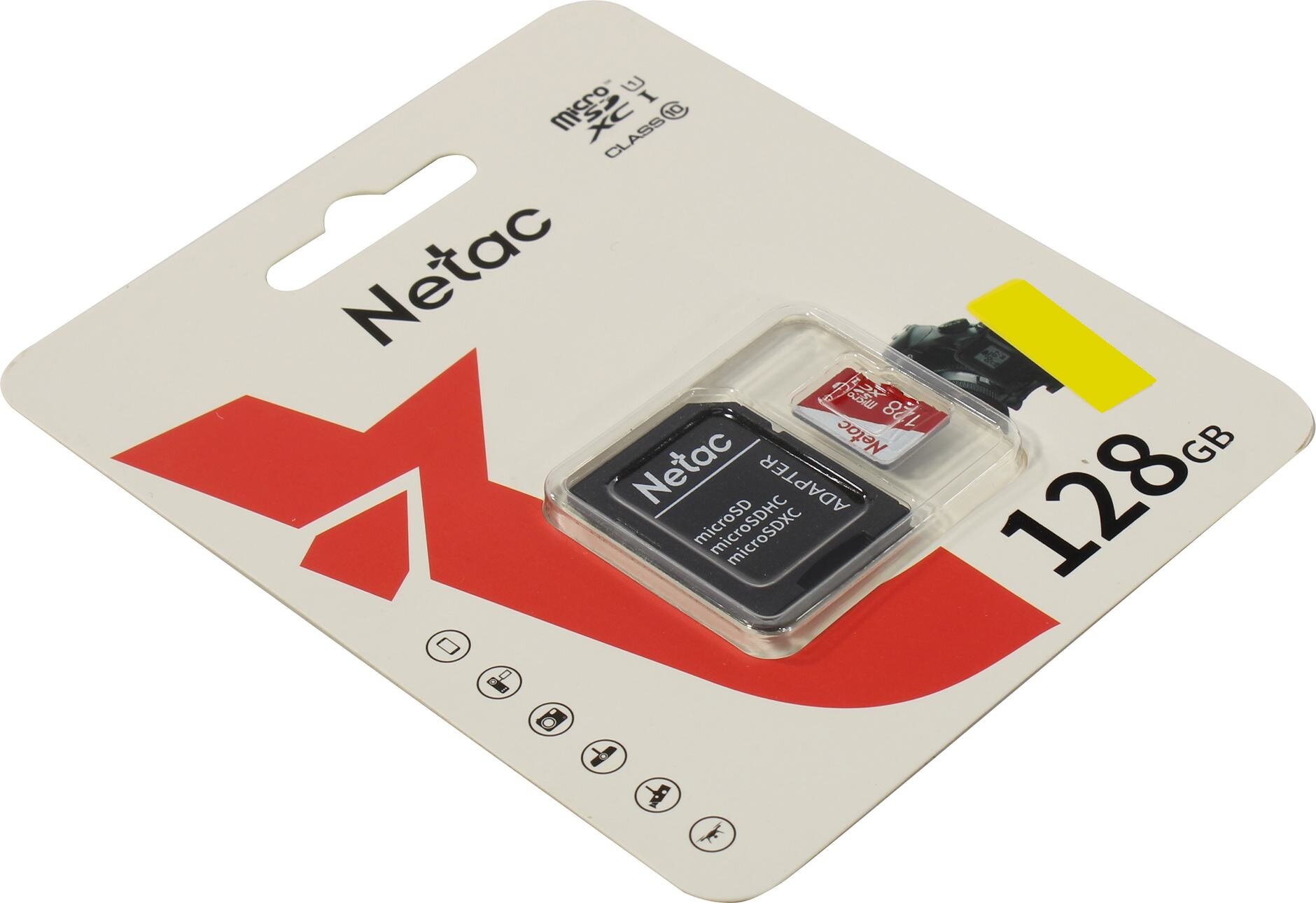 Карта памяти microSDXC UHS-I U3 NETAC P500 Extreme Pro 128 ГБ, 100 МБ/с, Class 10, NT02P500PRO-128G-R, 1 шт., переходник SD