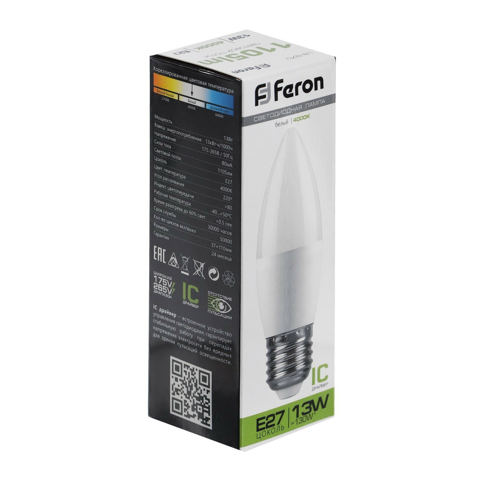 Лампа светодиодная, (13W) 230V E27 4000K С37, LB-970 3шт интересное: