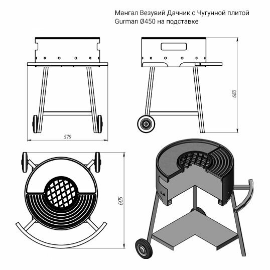 Мангал Везувий "Дачник" на подставке с чугунной решеткой Стейк D450 мм. интересное: