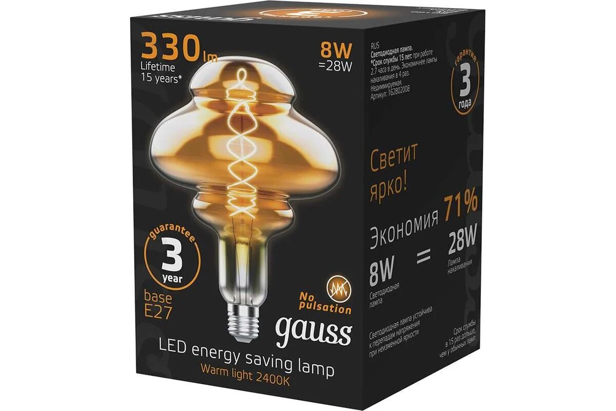 СохранитьЛампа светодиодная Gauss 162802008 Vintage Filament Flexible E27 8Вт 2400K BD160 Gray интересное: