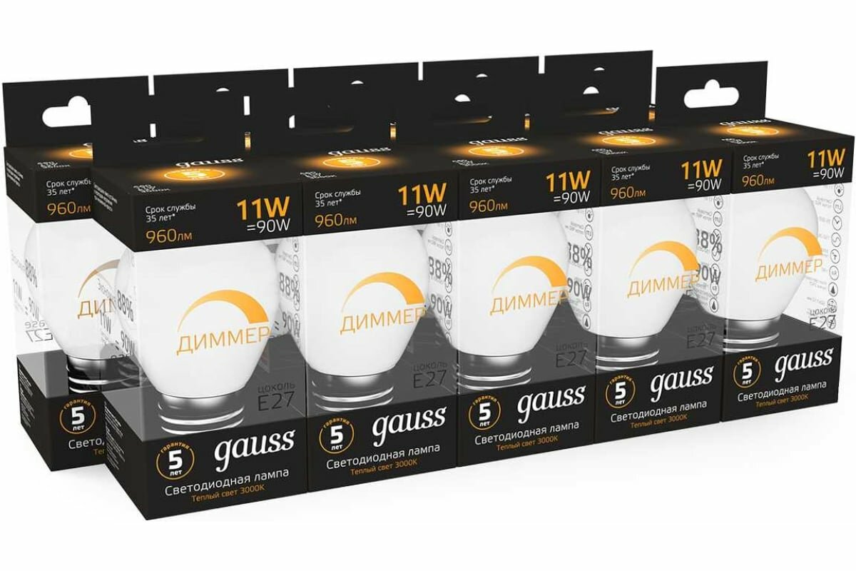 Ниже Вы можете прочитать отзывы на Лампочка светодиодная Е27 A60-dim 11W теплый свет 3000К Gauss Black, ознакомится с подробными характеристиками, посмотреть интересные обзоры и фотографии на Лампочка светодиодная Е27 A60-dim 11W теплый свет 3000К Gauss Black.