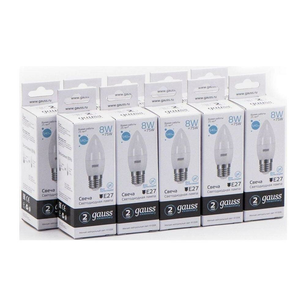 Упаковка светодиодных ламп Gauss Elementary LED Candle E27 8W 4100K 33228 10шт