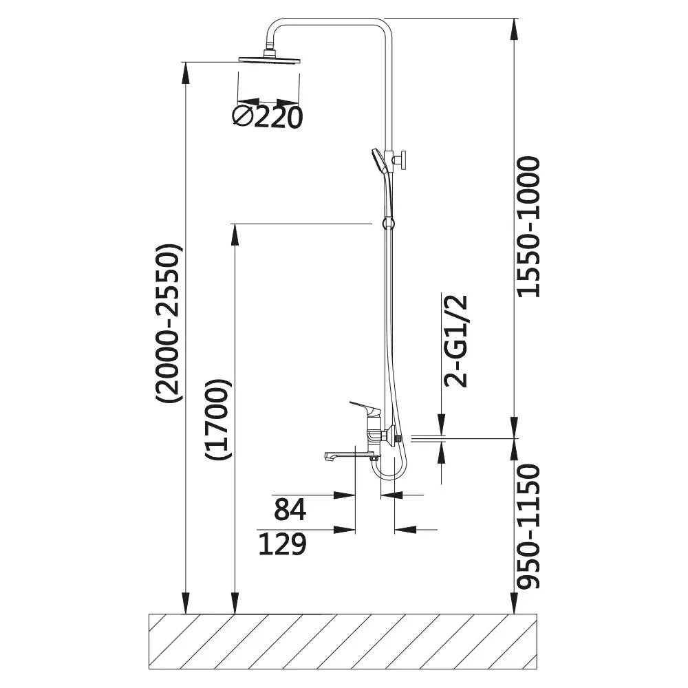 | Комплектация | верхний душ / лейка / шланг / держатель для лейки / душевая штанга / излив / кронштейн для верхнего душа / Смеситель |