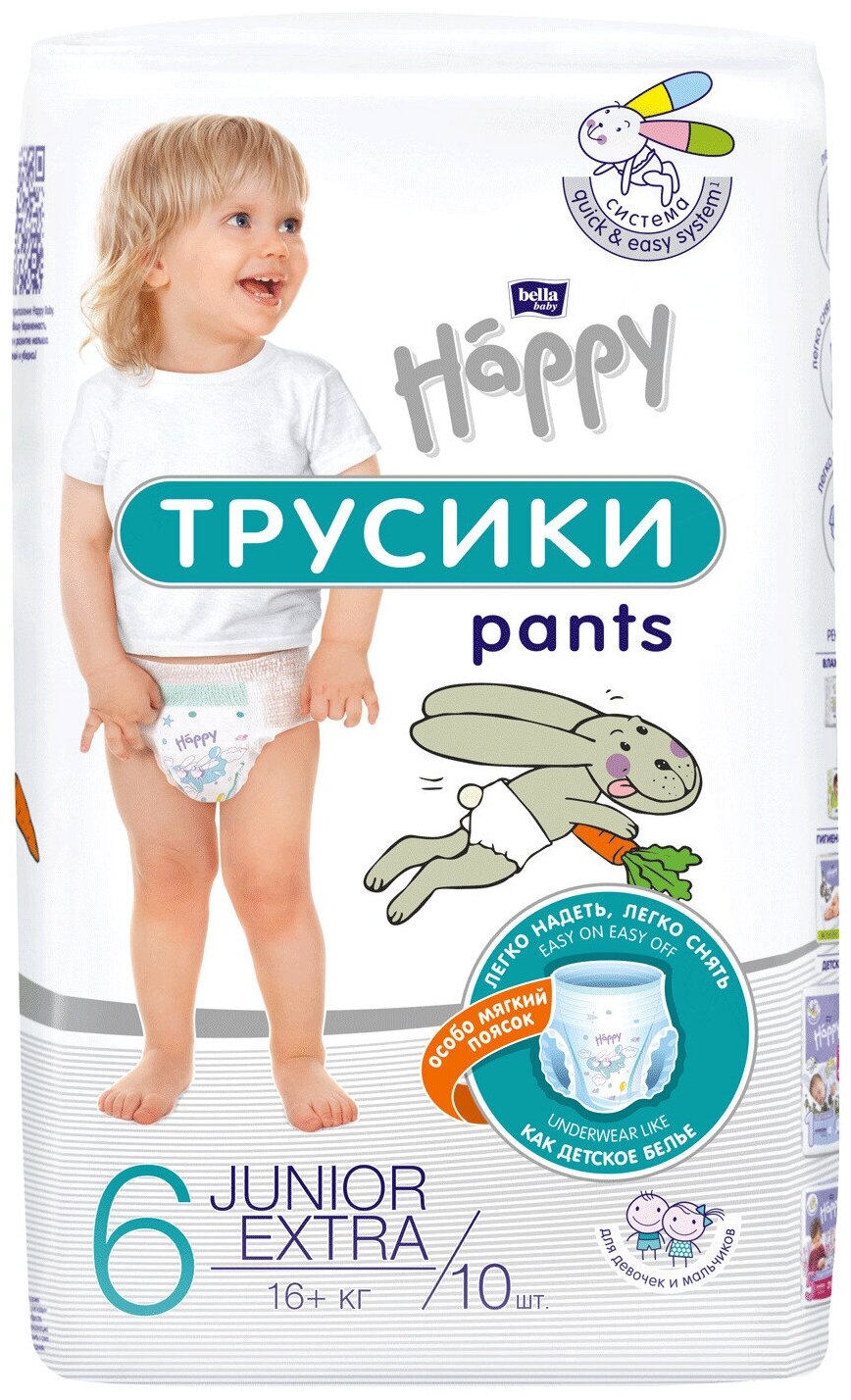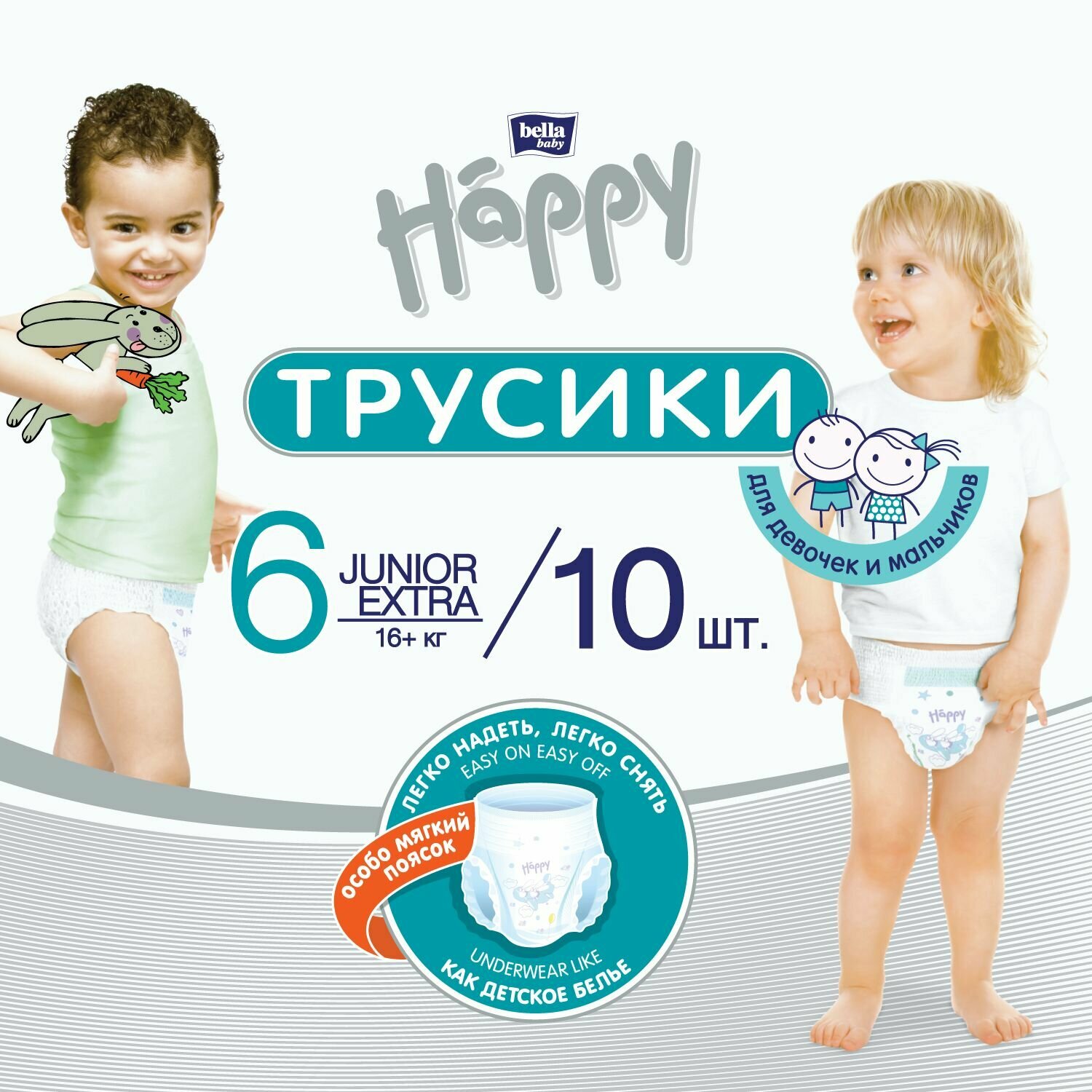 Подгузники - трусики для детей bella baby Happy Junior Extra дышащие, размер 6 (16+ кг), 10 шт.