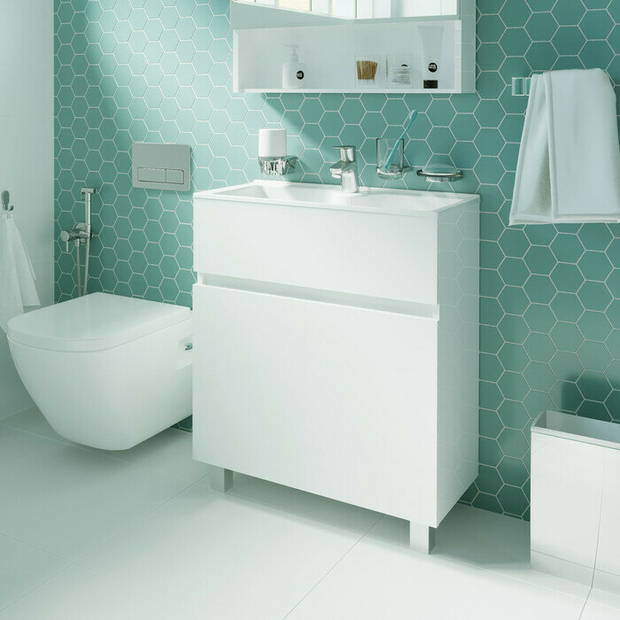 Тумба для ванной с раковиной Mira 60Н 2д. Белый глянец
