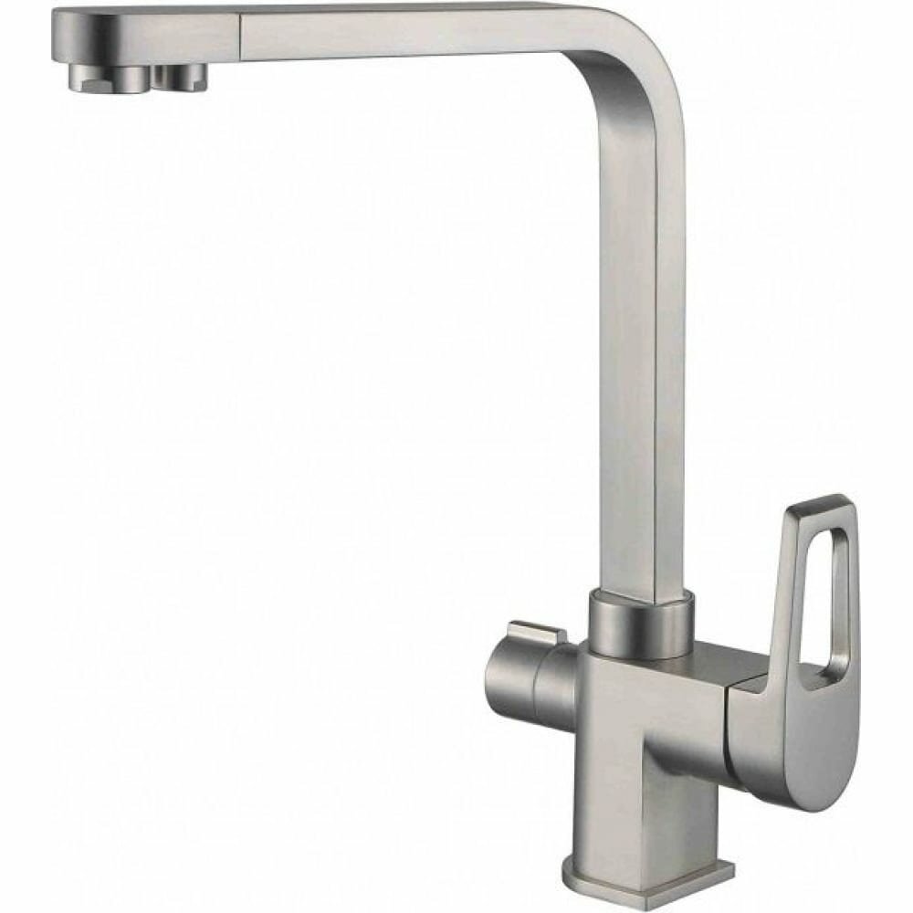 Смеситель для кухни под фильтр ZorG ZR 332 YF NICKEL, сатин никель матовый, хай-тек, квадратный, защита от брызг