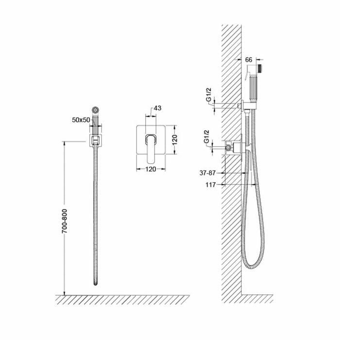 | Комплектация | смеситель скрытого монтажа - 1 шт.; декоративная накладка смесителя (латунная) - 1 шт.; шланг душа 1,2 м - 1 шт.; гигиеническая лейка (латунная) - 1 шт.; отвод из стены / держатель лейки (латунный) - 1 шт.; ручка смесителя - 1 шт. / ключ шестигранный - 1 шт.; инструкция - 1 шт |
