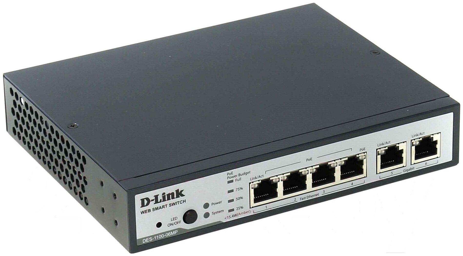 DES-1100-06MP/A1A Настраиваемый коммутатор 2 уровня с 4 портами 10/100Base-TX и 2 портами 10/100/100