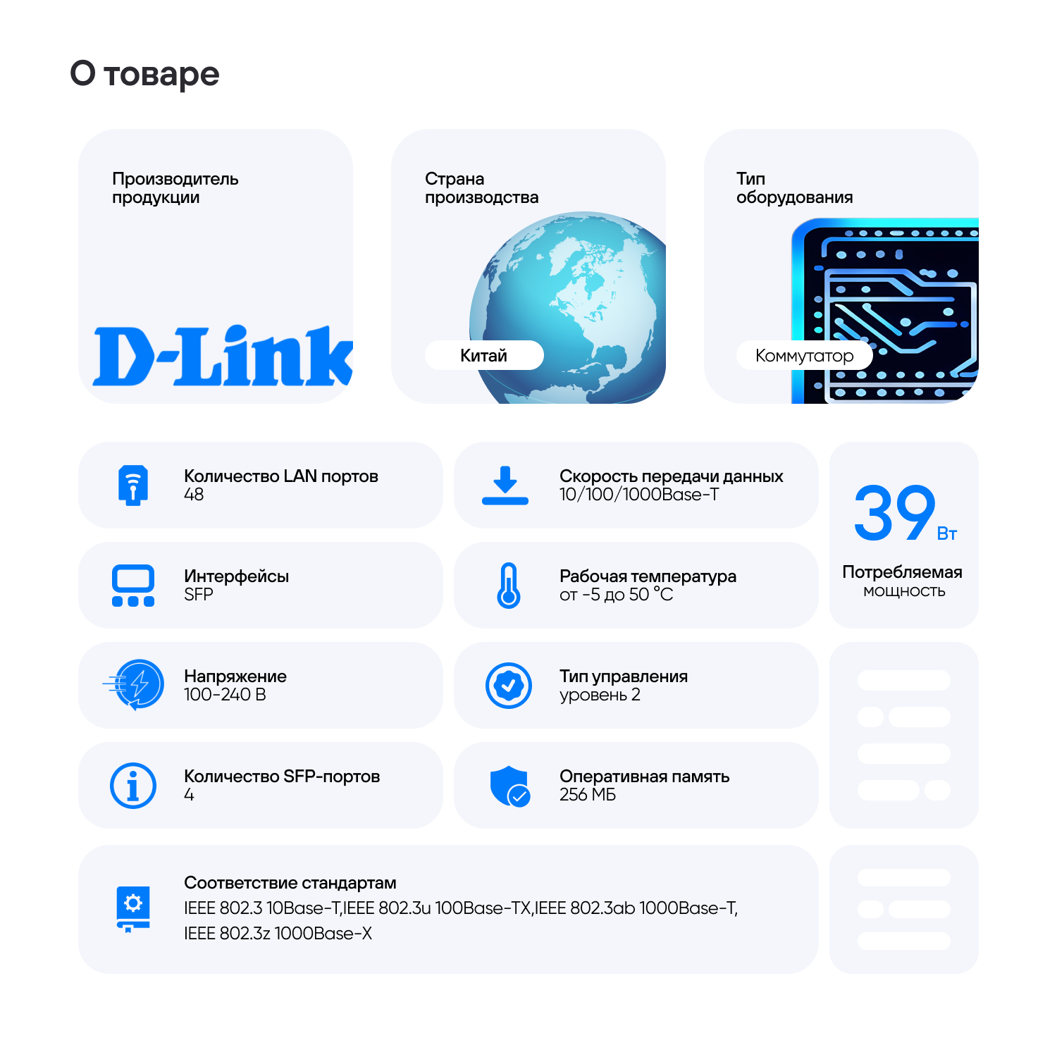 | Количество uplink/стек/SFP-портов и модулей | 4 |