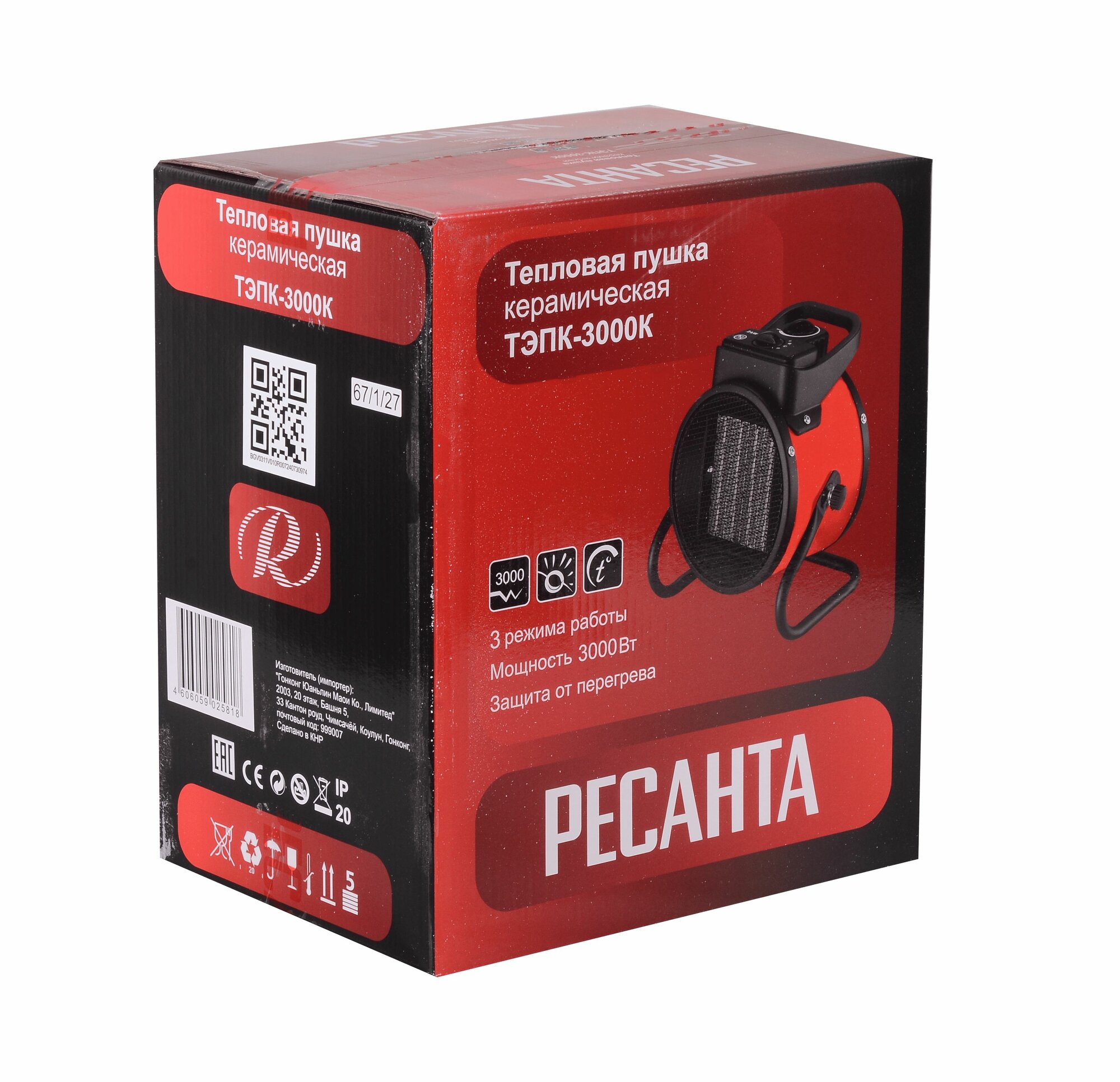 Ниже Вы можете прочитать отзывы на Электрическая пушка РЕСАНТА ТЭПК-3000K, 3 кВт, керамический нагреватель, круглая, ознакомится с подробными характеристиками, посмотреть интересные обзоры и фотографии на Электрическая пушка РЕСАНТА ТЭПК-3000K, 3 кВт, керамический нагреватель, круглая.