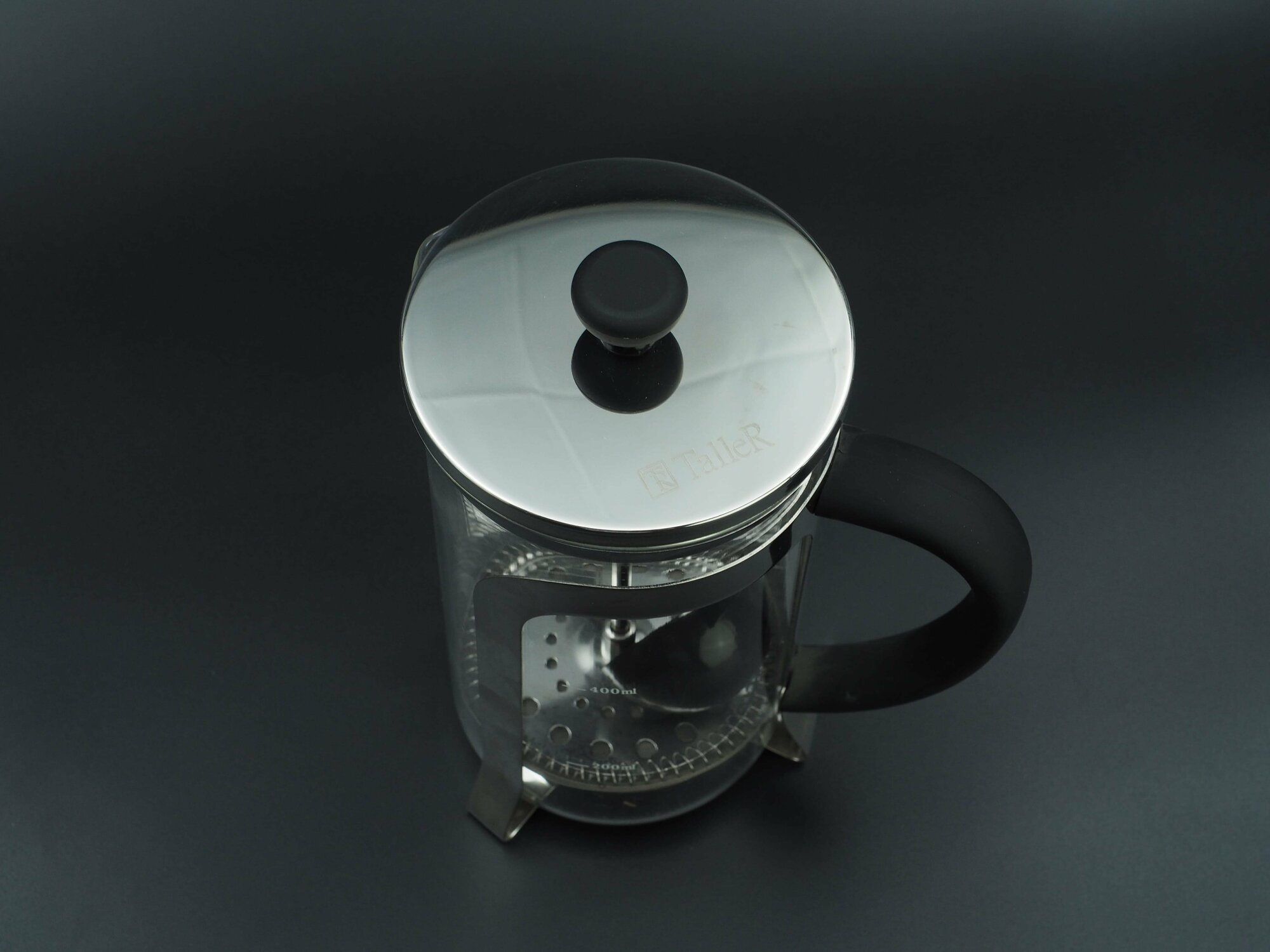 | Плюсы: | Самый любимый пресс. Колба стеклянная, сетка и пресс металлический. Приподнят над столом тремя металлическими ножками и поэтому медленно отдает тепло в поверхность стола. Объем на 1,5 больших кружки (2 пакетика Tess Pleasure). Вкус чая не портит, чай раскрывается полностью, при условии, что после закипания ставлю чайник остыть на 2-3 минуты (температура воды должна стать около 90 градусов). |