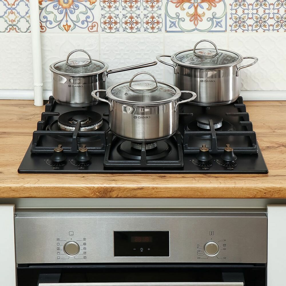 Кастрюля нержавеющая сталь, 5.8 л, с крышкой, крышка стекло, Daniks, Бонн, GS-01319-24CA, индукция