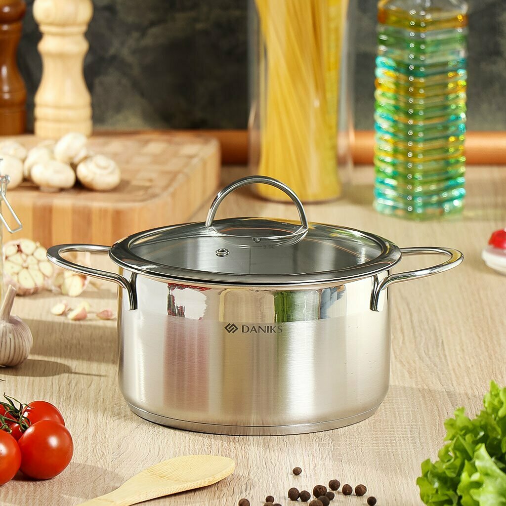 Кастрюля из нержавеющей стали с крышкой Daniks, 2.5 литра