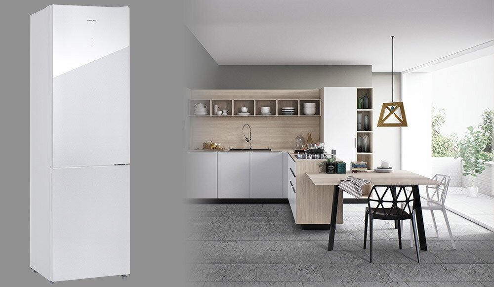 Холодильник HIBERG RFC-400DX NFGW, белое стекло