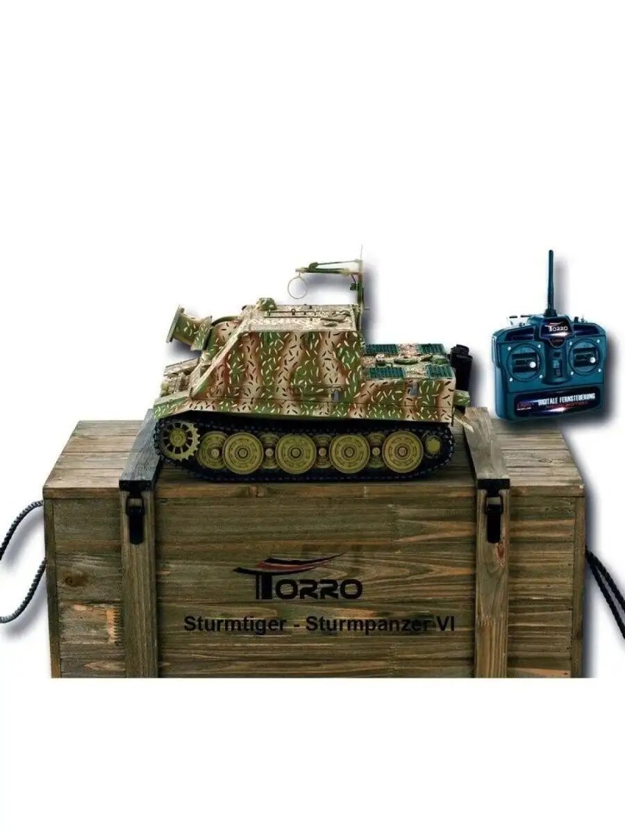 Р/У танк Torro Sturmtiger Panzer 1/16 2.4G, зеленый, ВВ-пушка, деревянная коробка