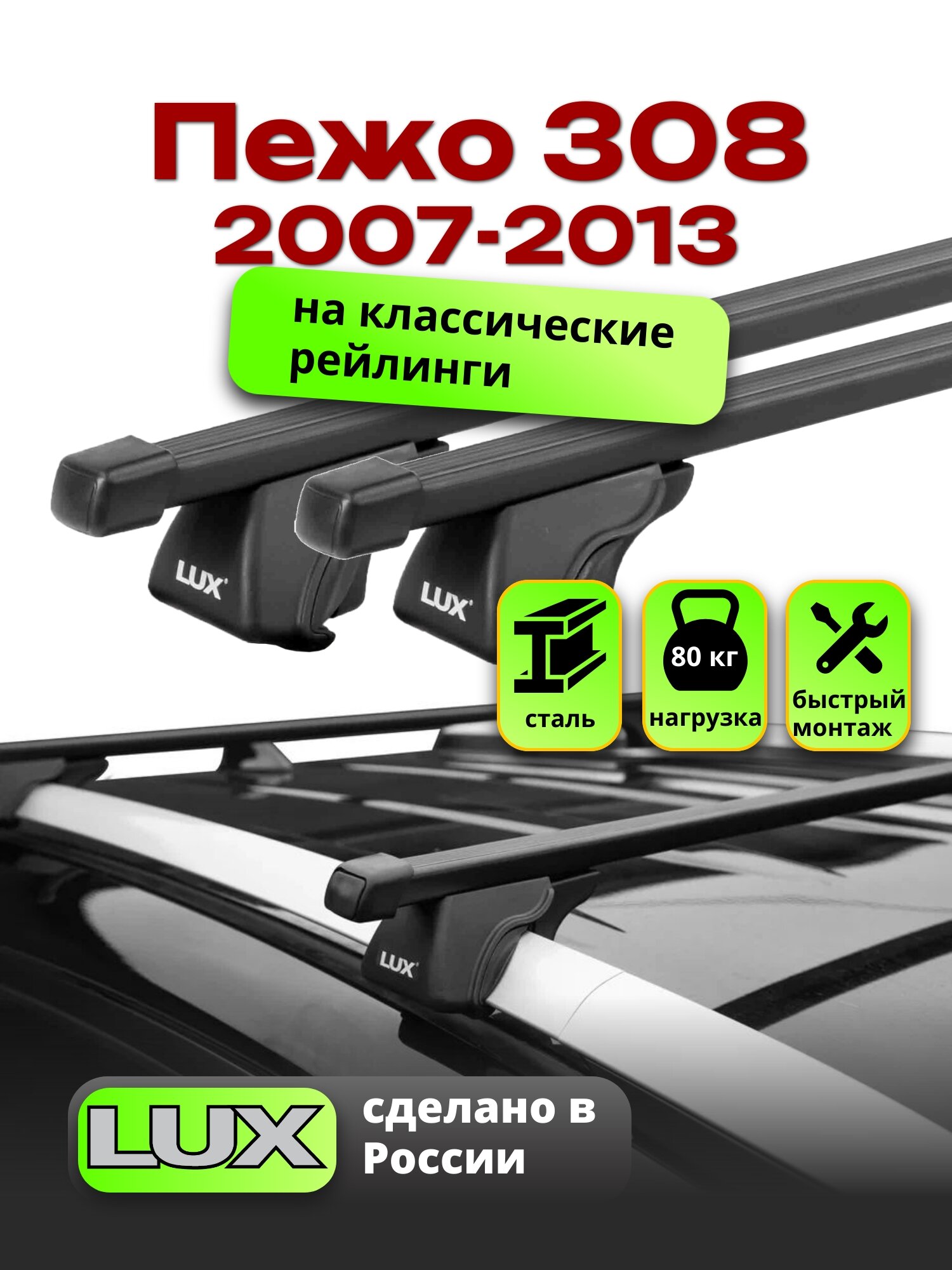 Багажник на крышу Пежо 308 2007-2013 на рейлинги, черный, LUX классик интересное:
