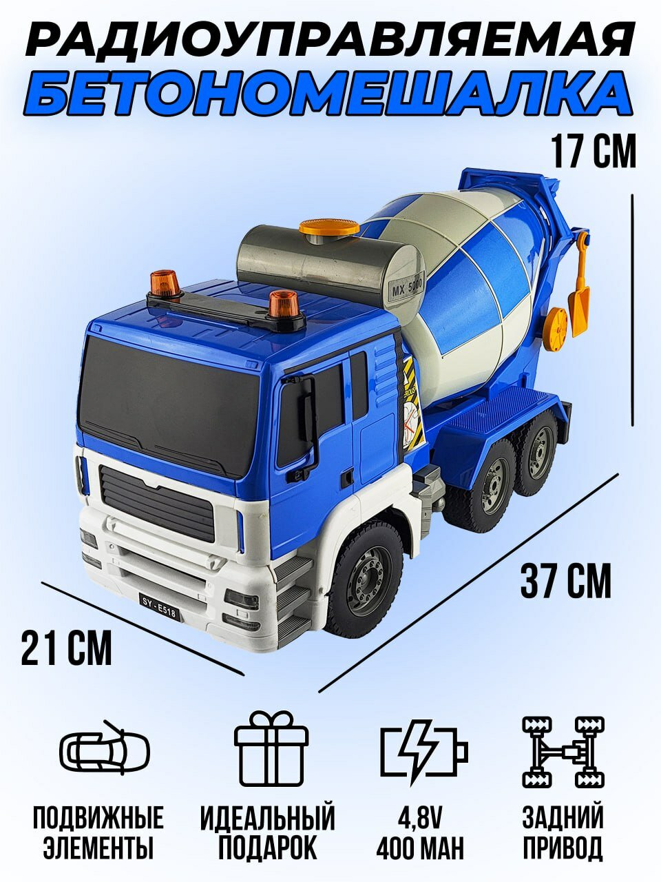 Бетономешалка Double Eagle E518-003, 1:20, 38 см, синий/серый