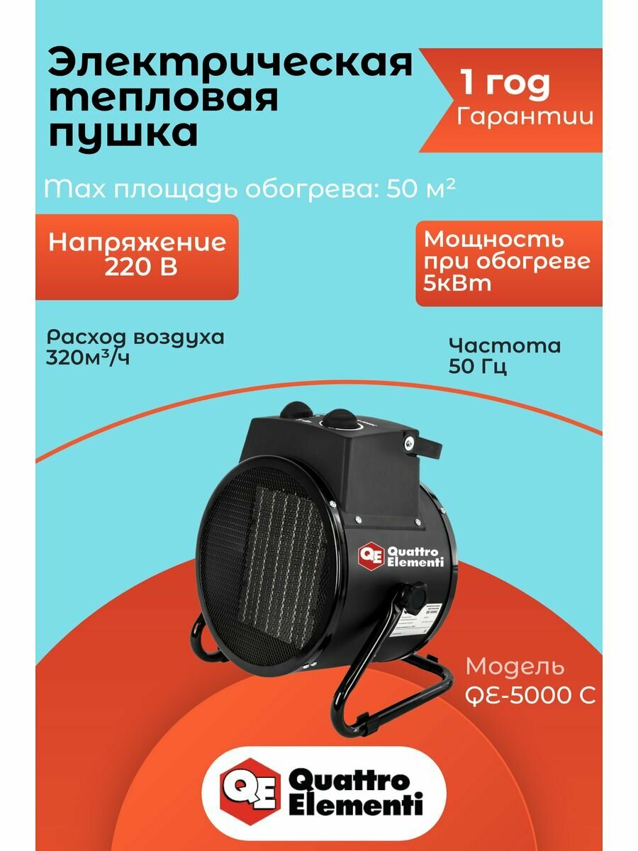 Тепловая пушка электрическая 5 кВт QUATTRO ELEMENTI QE-5000C керамическая