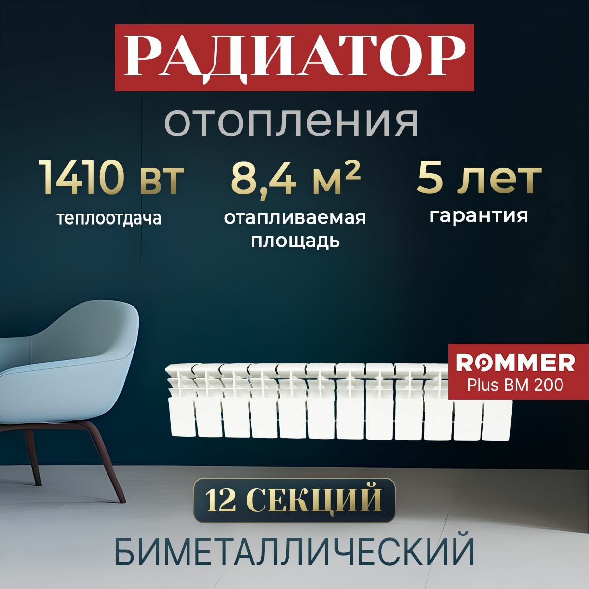 Купить Радиатор Rommer Plus BM 200 12 секций, биметаллический