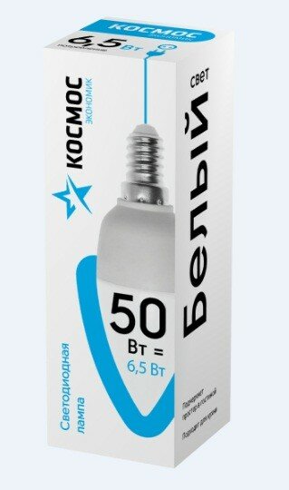 Лампа светодиодная КОСМОС Basic CN 4500K, E14, C37, 6.5 Вт, 4500 К
