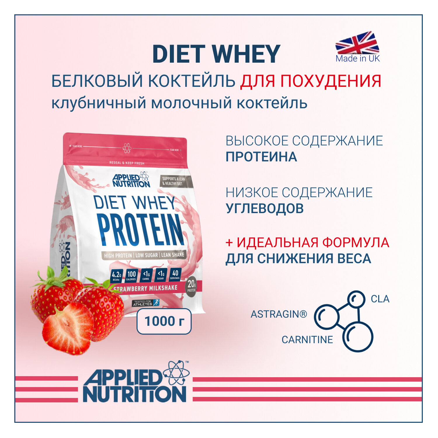 Сывороточный протеин Applied Nutrition DIET WHEY, клубничный молочный коктейль, 1000 гр