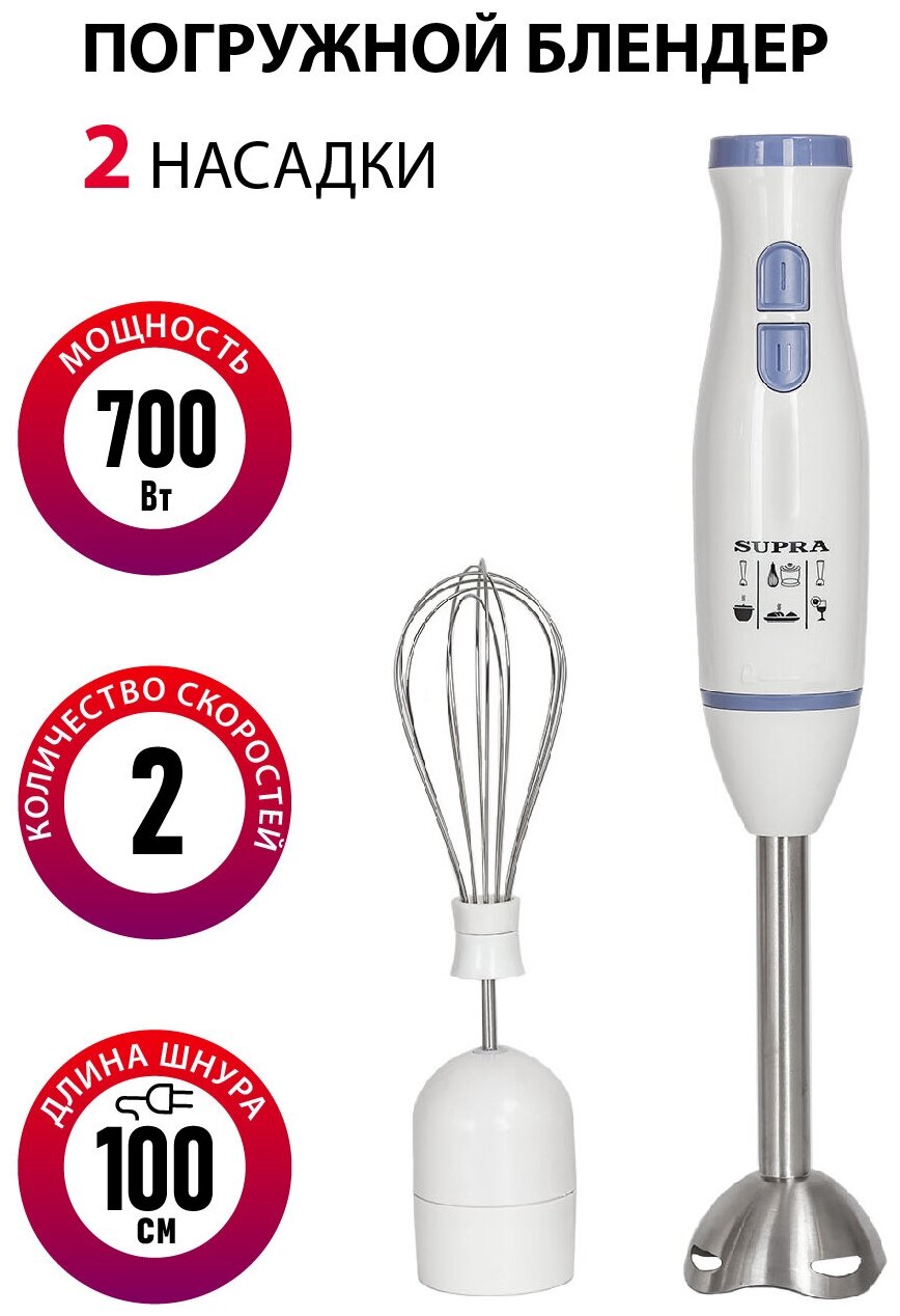 Блендер SUPRA HBS-695 [700 Вт, скоростей - 2, венчик, белый, голубой]