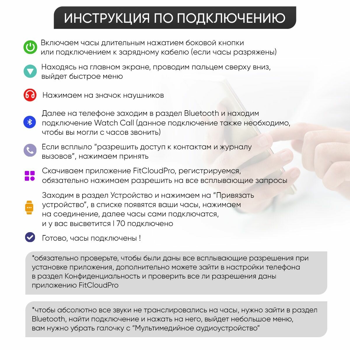 | Особенности | USB / поиск смартфона / поиск часов / фонарик |