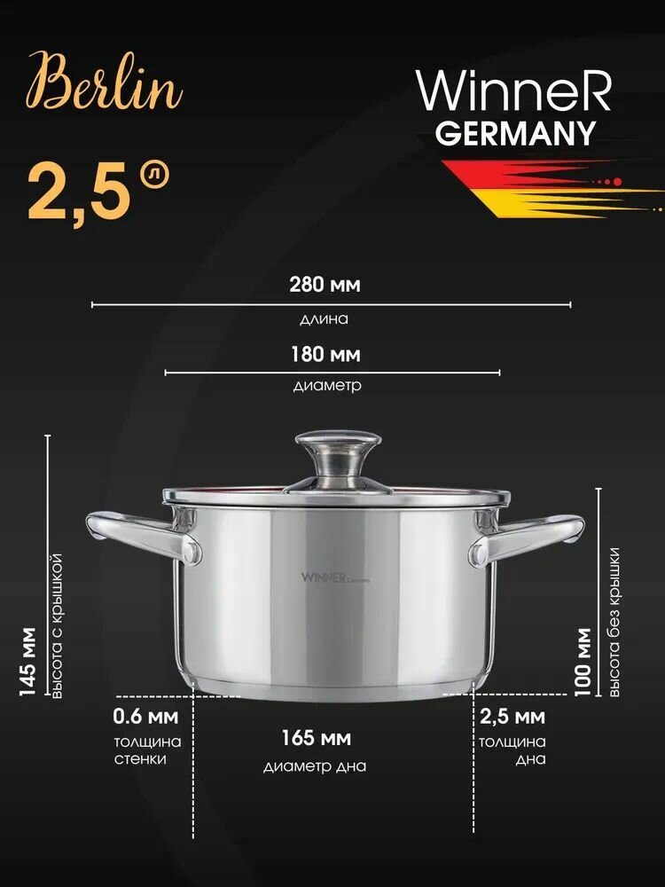 СохранитьКастрюля нерж. WR-1190 2,5л Winner интересное: