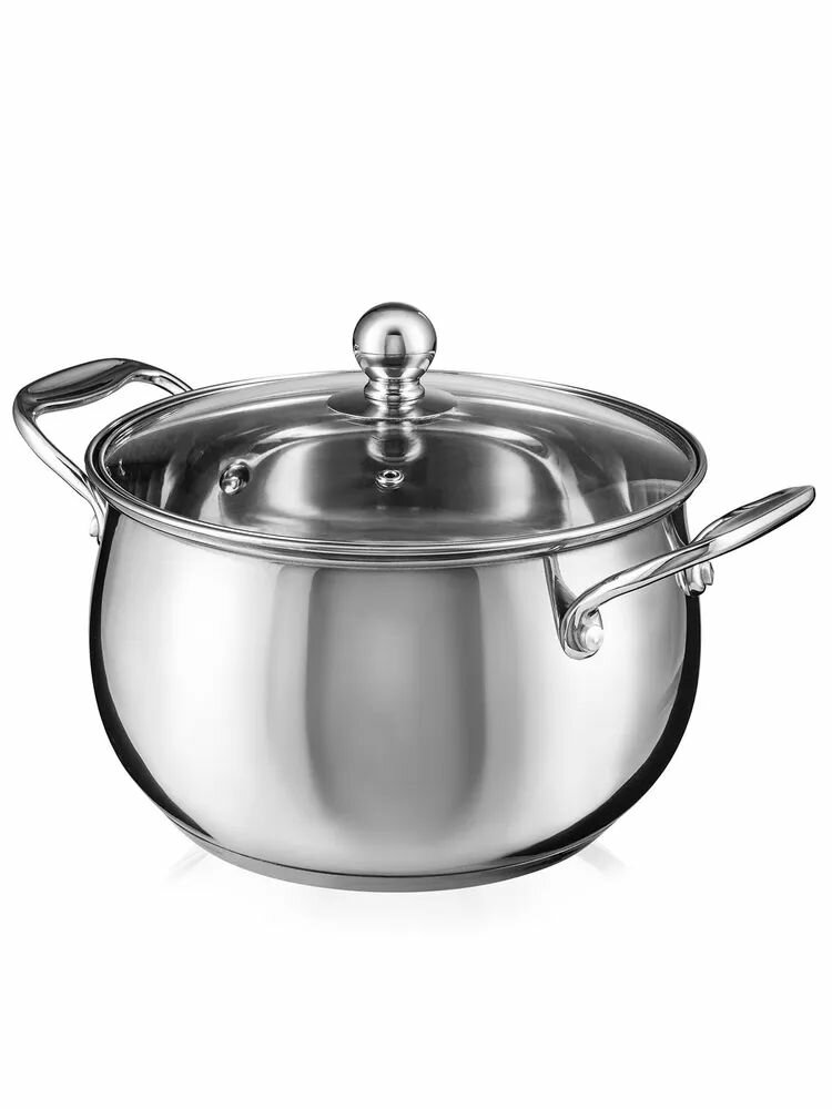 Кастрюля 5,8л BERLIN капс дно, стекляная крышка, мерная шкала, зерк полир (нержавеющая сталь)