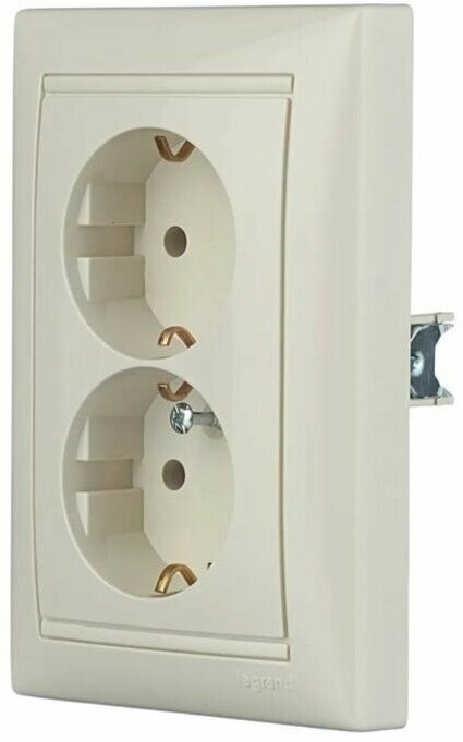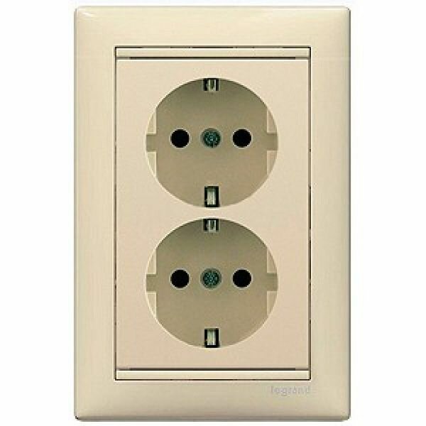 Розетка 2-м СП Valena 16А IP20 2х2P+E с заземл. немецк. стандарт в сборе сл. кость Leg, LEGRAND 774370 (1 шт.)