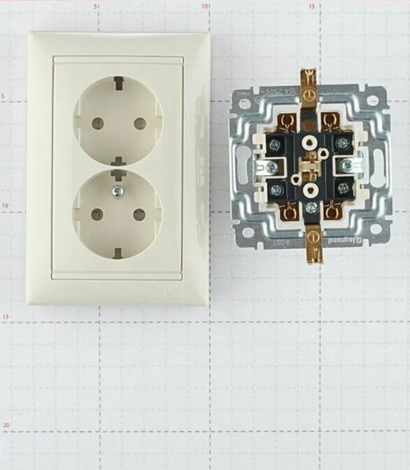 | Плюсы: | Легко можно заменить одинарную розетку на двойную. При этом общий стиль практически сохранён; то что она миллиметра на четыре толще одинарных, видно только если внимательно смотреть вблизи. Удачный вариант для случая, когда рядом вырезать отверстие под ещё одну одинарную розетку нет либо возможности, либо желания из-за немалых трудов и грязи . |
