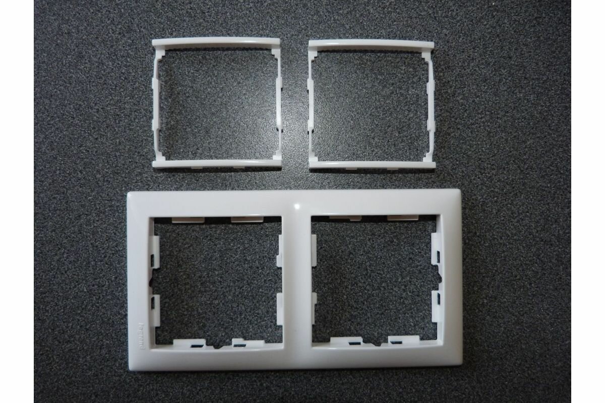 | Плюсы: | Обычные рамки, хорошо вписались в розетки и выключатели.