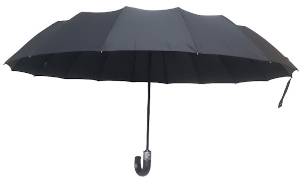 Зонт мужской - черный, 16 спиц, складной, полный автомат, антиветер