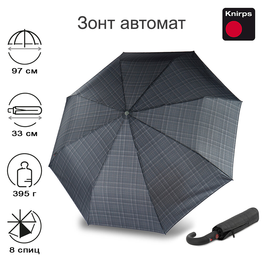Купить Зонт мужской автомат антиветер ручка-крюк Knirps