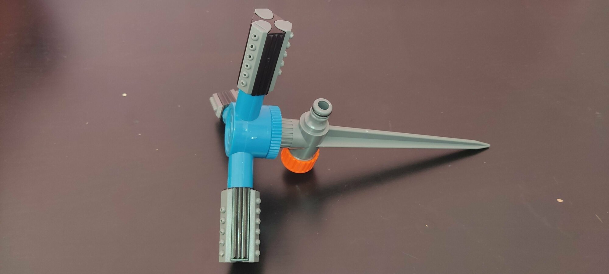 | Дополнительная информация | площадь полива регулируется поворотом насадок на каждой из лопастей, которые имеют 3 конфигурации, отличающиеся разным количеством дюз: 4, 5 либо 6 штук; распылитель снабжен двумя соединительными гнездами, что позволяет использовать его в цепочке из нескольких распылителей |