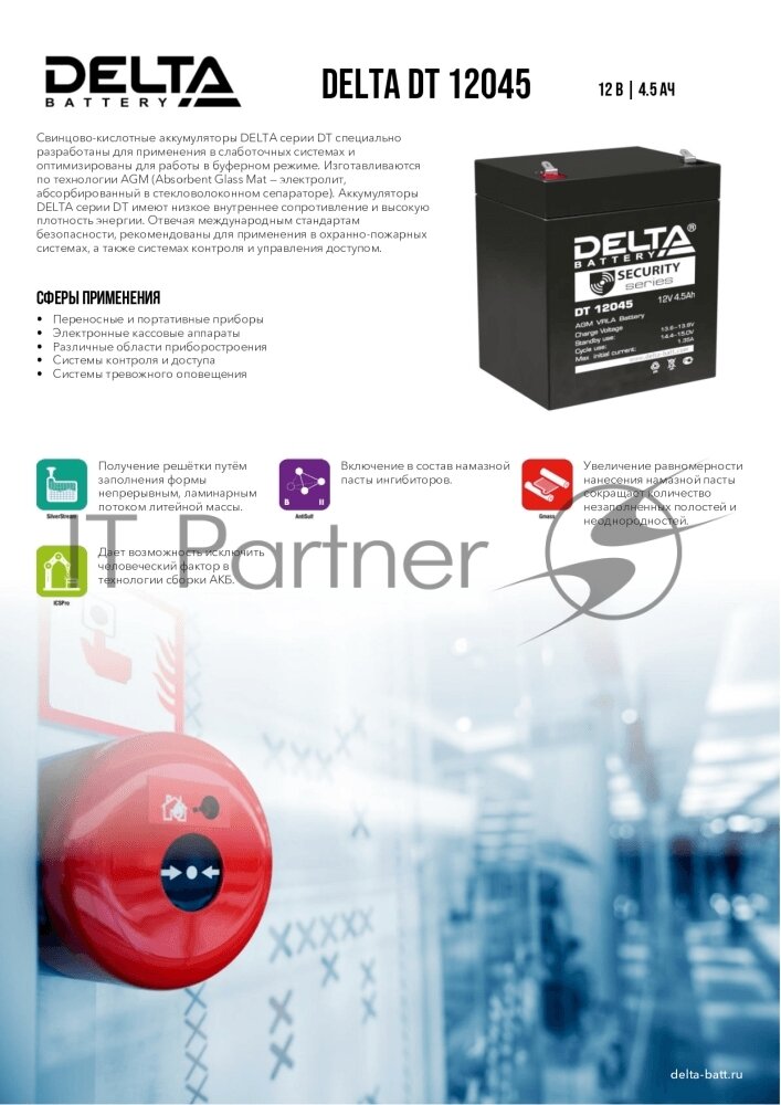 Аккумулятор DELTA 12В/4.5 А/ч (АКБ ) DT 12045 Delta