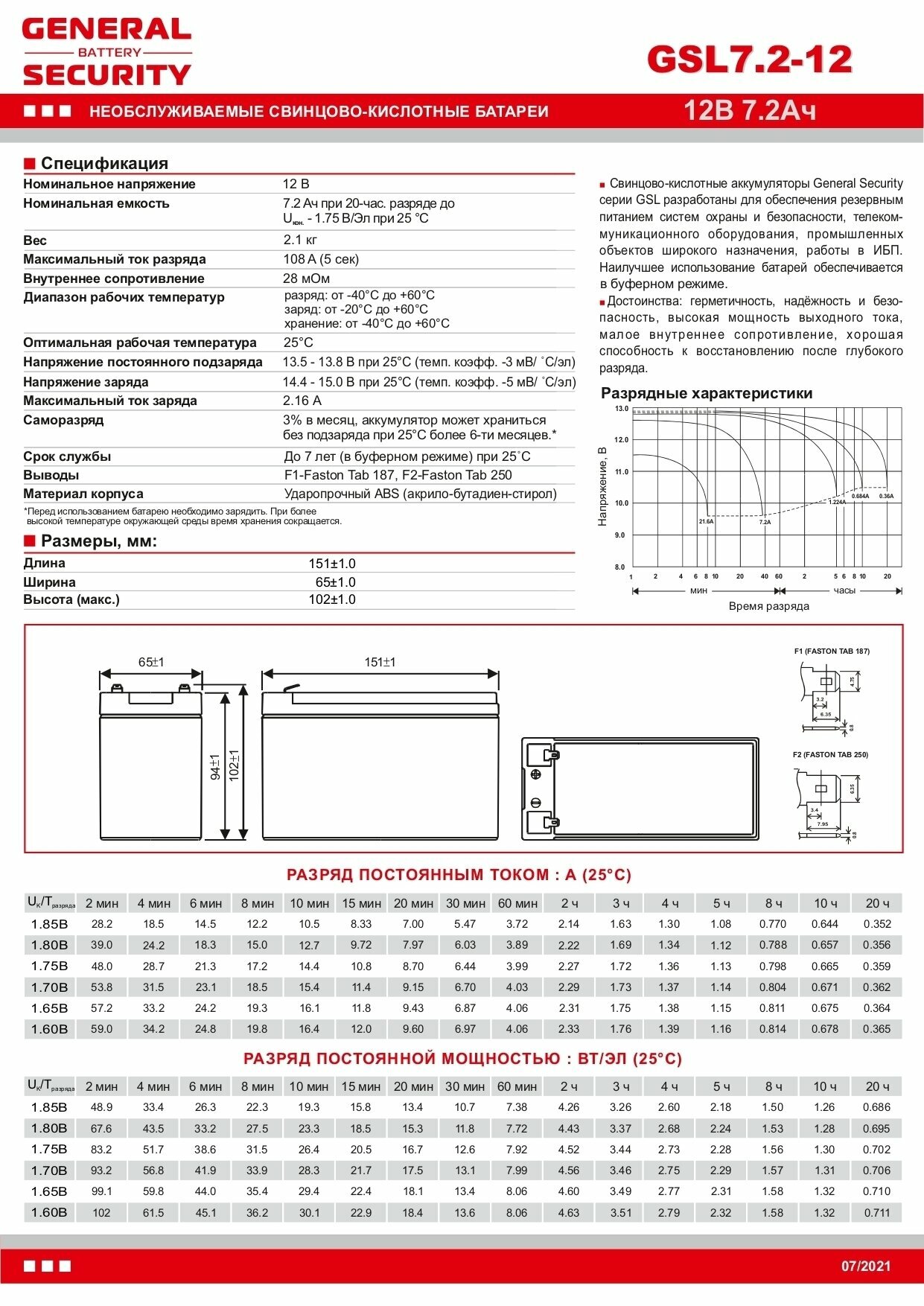 Аккумулятор GENERAL SECURITY GSL7.2-12 интересное: