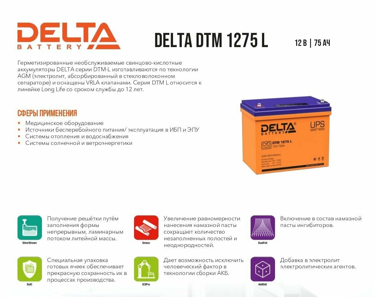 DELTA Аккумуляторная батарея Delta DTM 1275 L DTM 1275 L