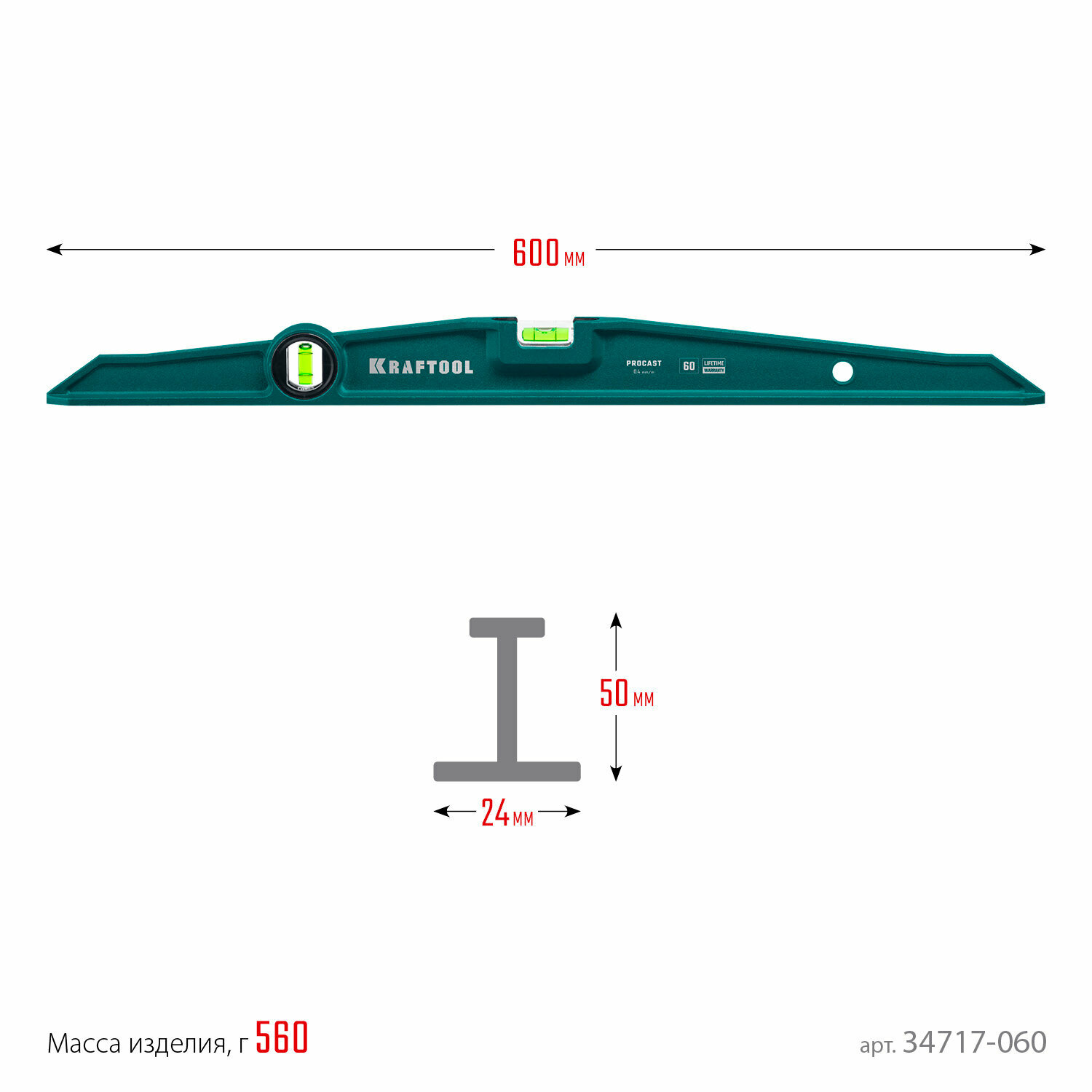 KRAFTOOL PROCAST, 600 мм, литой уровень (34717-060)