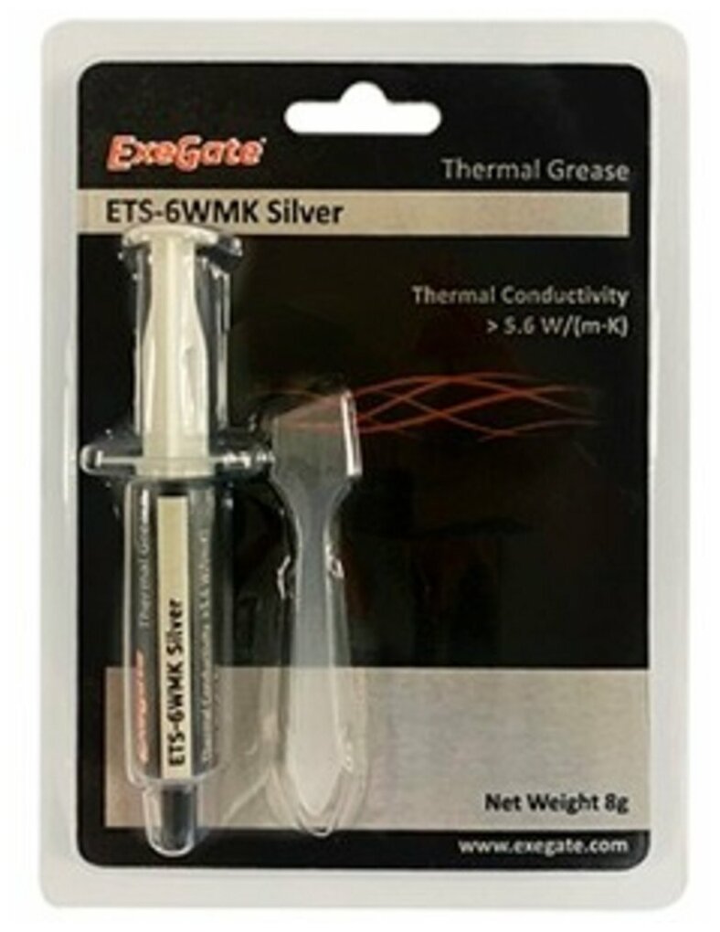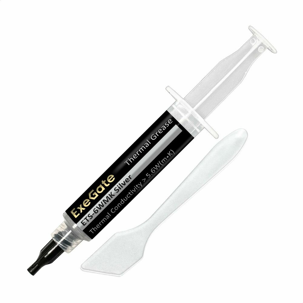 Термопаста ExeGate ETS-6WMK Silver (5,6 Вт/(м•К), 2г, шприц с лопаткой)