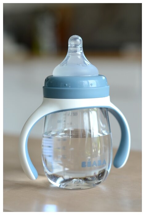 Поильник детский BEABA 210 мл. с двумя насадками в комплекте, поильник непроливайка с соской и силиконовым носиком, бутылочка для кормления, голубой