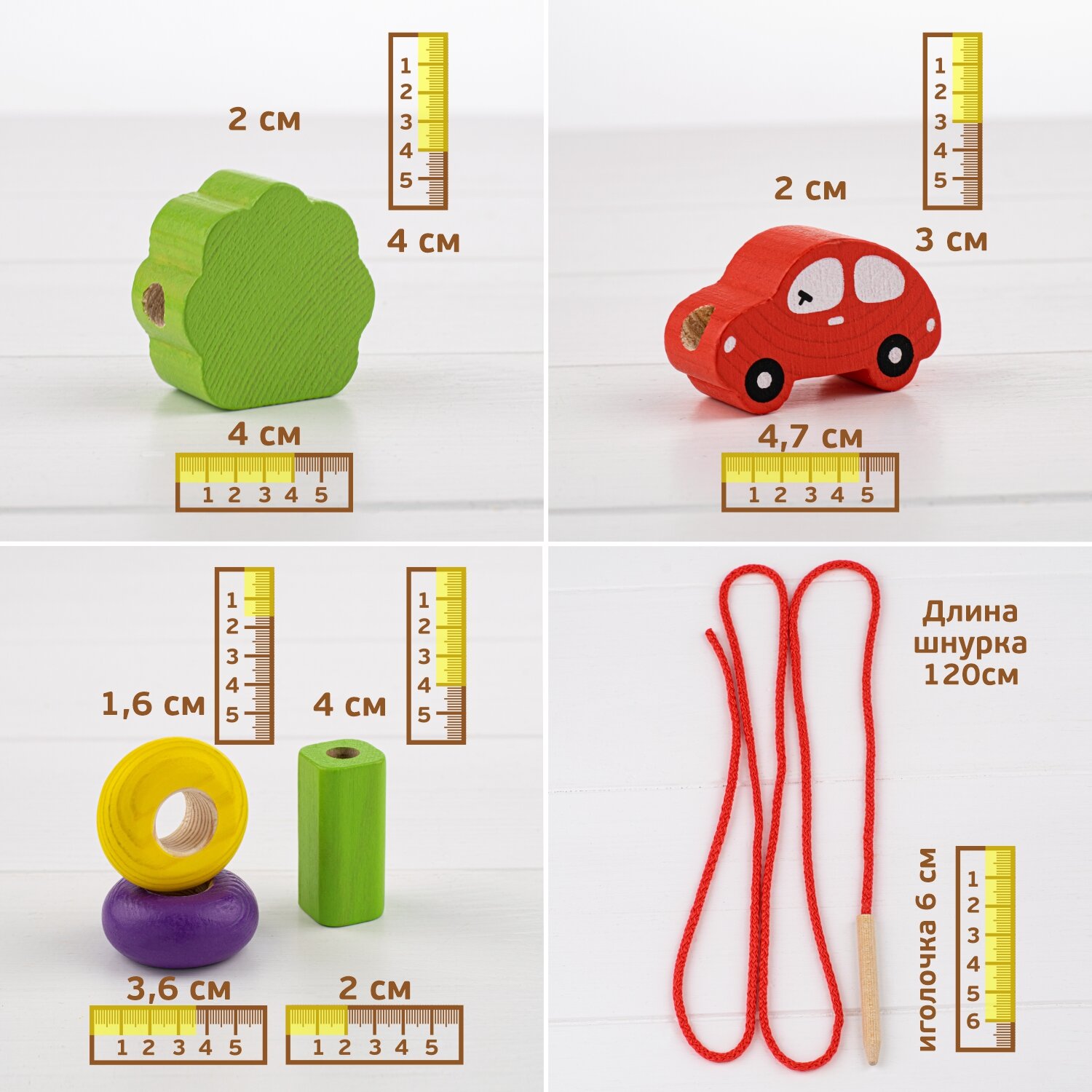 Развивающая игрушка "Транспорт", деревянная, шнуровка бусы, 13 деталей
