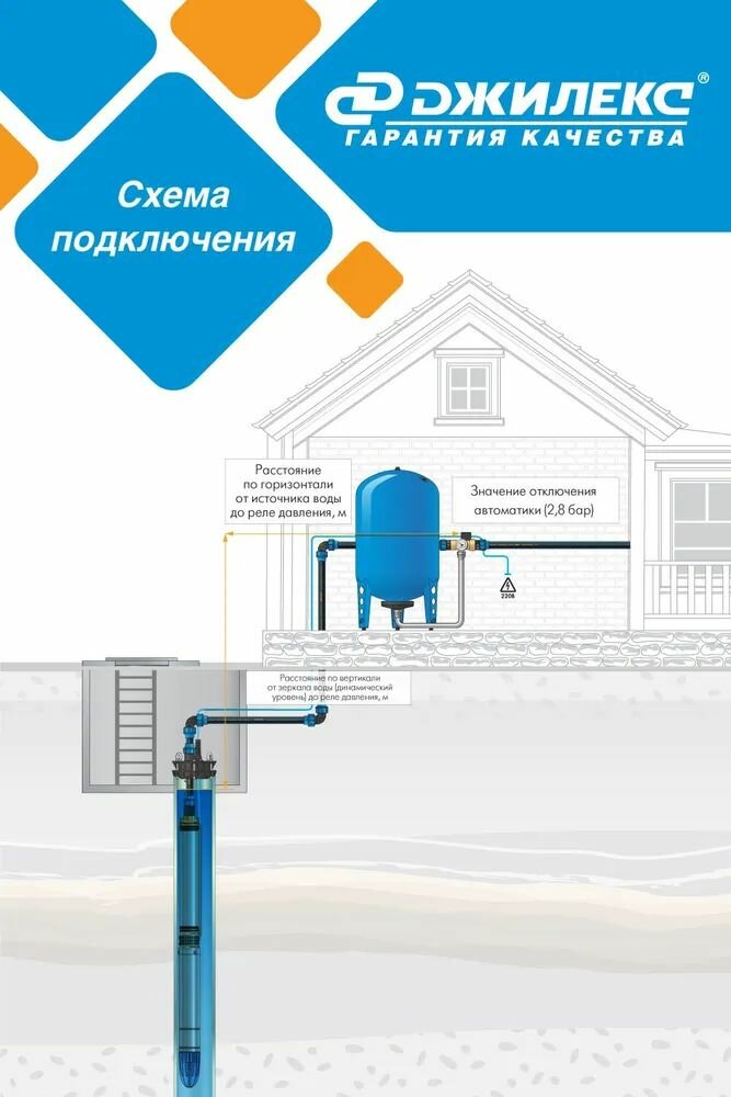 ДЖИЛЕКС Насос погружной скважинный ДЖИЛЕКС водомет 110/110 ок 6,6 м3/час, 110 л/мин, Н-110 м, d-98 мм, каб. 70 м. Насос для скважин 50-80 метров центробежный